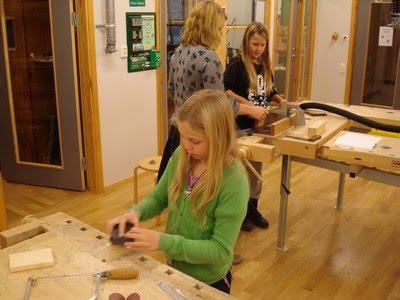 Fyrorna har gjort trätomtar i slöjden och treorna har färgat batik.